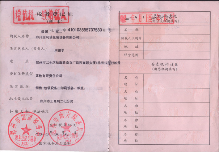 郑州丝珂瑞包装设备有限公司 >> 资质证书